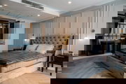 - Bedrooms: Offers plush interiors marked by decorative headboards, large windows with city views, and minimalist design. The queen-sized bed is surrounded by elegant bedside tables and modern lighting.
