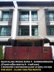 For Rent: Baan Klang Muang Rama 9 – Ramkhamhaeng 3-storey townhouse with full functionality in a prime and convenient location21 sq.wa.3 fl.฿30,000/monthNEW !