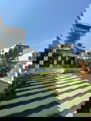This elegant corner pool villa sits on a generous 200 sq.w. (approx. 1,000 sqm) land plot, offering both space and comfort for family living. The home features 4 bedrooms and 3 bathrooms, designed with functionality in mind to provide a practical yet inviting atmosphere. At the heart of the property is a private swimming pool measuring 9 x 3.5 meters, complemented by a landscaped garden area that creates a relaxing environment for outdoor living and entertaining.