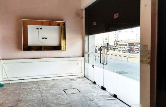 - - ด้านล่างเป็นผนังและประตูกระจกเต็มบาน พร้อมประตูเหล็กม้วนด้านนอก