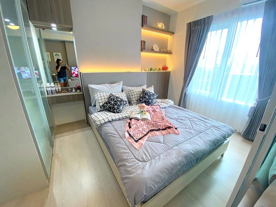 Chapter one eco 🍁มีกระจกกั้นห้องนอน 🍁เฟอร์ครบ ลากกระเป๋าเข้าอยู่เลยจ้า 🍁 10000เท่านั้น ห้องใหม่มาก1 ห้องนอน24m2ชั้น 22฿10,000/เดือน