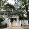 บ้านสีขาวกรุไม้ฝา มีโดมแหลม มีระเบียงฉลุลายสวยงาม